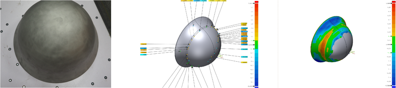 实物检测 三维扫描数据 →零件原始数模对比 → 创建对比设置偏差 → 生成色谱图 → 分析评价