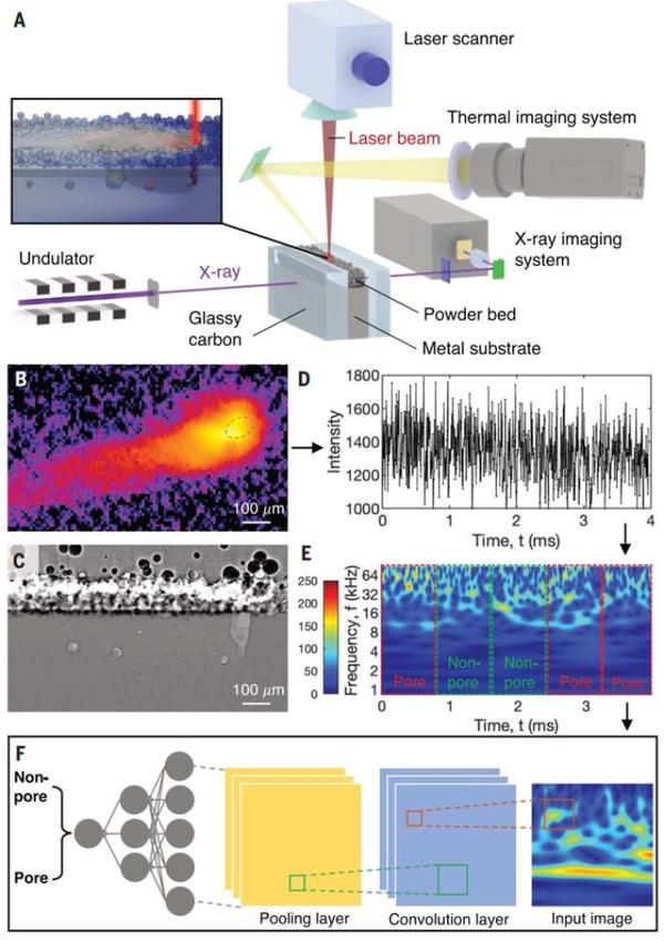 美国弗吉尼亚大学Tao Sun团队开发出一种高精度的方法,可以利用机器学习从热特征中检测出孔隙的形成,实施这种孔隙形成跟踪有助于避免建造由于高孔隙率而导致失效的部件。通过同步高速同步x射线成像和热成像,结合多物理模拟,发现了Ti-6Al-4V激光粉末床熔合过程中的两种小孔振荡。进一步通过机器学习扩大了这种理解,实现了以亚毫秒级的时间分辨率和近乎完美的预测率来检测随机小孔孔隙生成事件,这一简单实用的策略有望在商业系统中得到应用。相关工作以“Machine learning–aided real-time detection of keyhole pore generation in laser powder bed fusion”为题,于2023年1月5日发表在《Science》上。