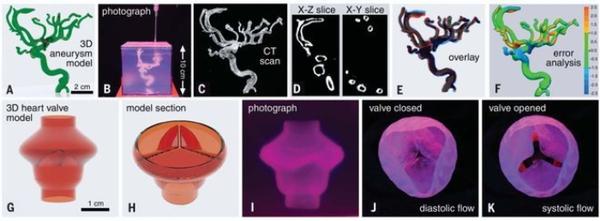 美国弗罗里达大学Thomas E Angelini团队开发了一种由PDMS为基材的3D打印精确、复杂细节结构的方法。该方法主要采用一种由硅油乳液制成的支撑材料,这种材料对有机硅油墨的界面张力可以忽略不计,消除了经常导致印刷有机硅特征变形和断裂的破坏性力量,这种方法在文中被称为为超低界面张力的增材制造。这种方法的多功能性使得能够使用成熟的有机硅配方来制造直径小至8微米的复杂结构和特征。通过调整这种支撑材料的弹性和流动特性实现了高性能打印,能够制造出复杂的形状,例如脑动脉瘤模型和功能性三叶心脏瓣膜。通过使用几种不同的市售PDMS配方来打印各种结构,证明了该打印技术不需要专门的油墨。在深入的研究后,发现打印的3D打印结构比模制结构更具可扩展性并且机械性能良好。相关工作以“A silicone-based support material eliminates interfacial instabilities in 3D silicone printing”为题,于2023年3月23日发表在《Science》上。