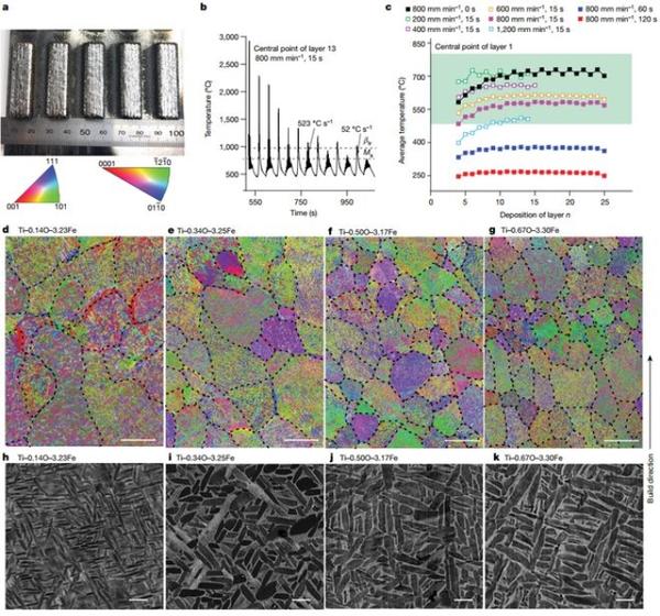 皇家墨尔本理工大学Ma Qian教授和悉尼大学Simon P. Ringer教授将合金设计与3D打印相结合,展示了一系列具有优异拉伸性能的钛-氧-铁合金。丰富的氧气和铁以及简单的工艺使钛-氧-铁合金对各种应用具有吸引力,也为目前作为工业废料的非等级海绵钛或海绵钛-氧化铁的工业规模使用提供了方向。相关工作以“Strong and ductile titanium–oxygen–iron alloys by additive manufacturing”为题,于2023年5月31日发表在《Nature》上。