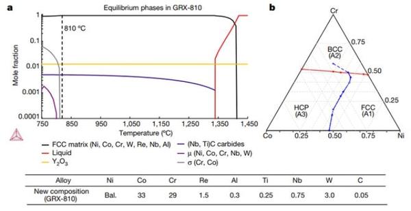 美国宇航局格伦研究中心Timothy M. Smith使用模型驱动的合金设计方法和激光快速制造技术,开发了一种新的氧化-分散-强化镍钴基合金。这种被称为GRX-810的氧化物分散强化合金,使用激光粉末床熔融技术将纳米级Y 2O 3颗粒分散到整个微观结构中。GRX-810在1093℃下与传统多晶锻造镍基合金相比,其强度提高了2倍,蠕变性能提高了1000倍,抗氧化性提高了2倍。这些结果展示了未来的合金开发是如何利用分散强化与增材制造加工相结合,有助于加速发现革命性的材料。相关工作以“A 3D printable alloy designed for extreme environments”为题,于2023年4月19日发表在《Nature》上。